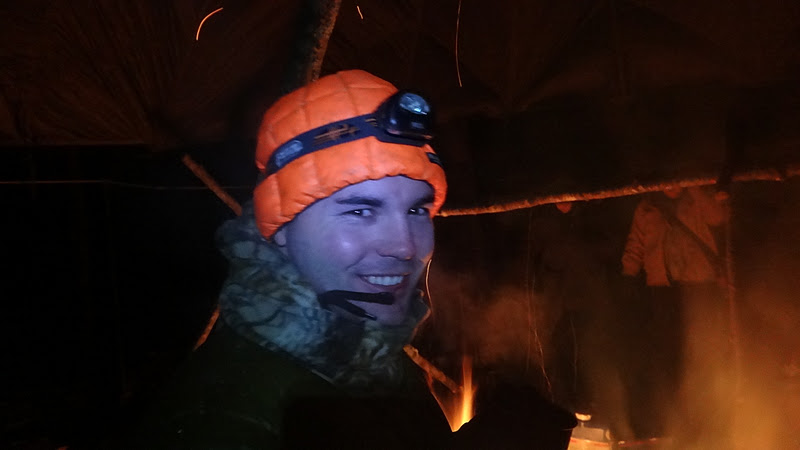 Evening fire had some surprises- Walking Bear threw some Osage Orange wood on the fire and the sparks had everyone wearing down clothing scattering like cockroaches to avoid burn holes- Walking Bear found it very amusing wearing his carharts!