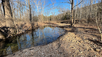 I was about to settle on the Wilderness Trail in Meramec State Park, which we have walked many times as well as stayed in the RV park. Then I thought of Green's Cave. I had hiked to Green's Cave from the Sleepy Hollow side in December of 2020.